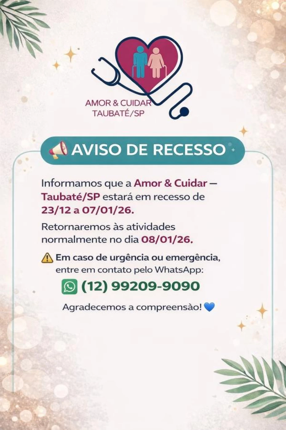 Enviar uma mensagem para o WhatsappSobre Amor & Cuidar Taubaté/SP