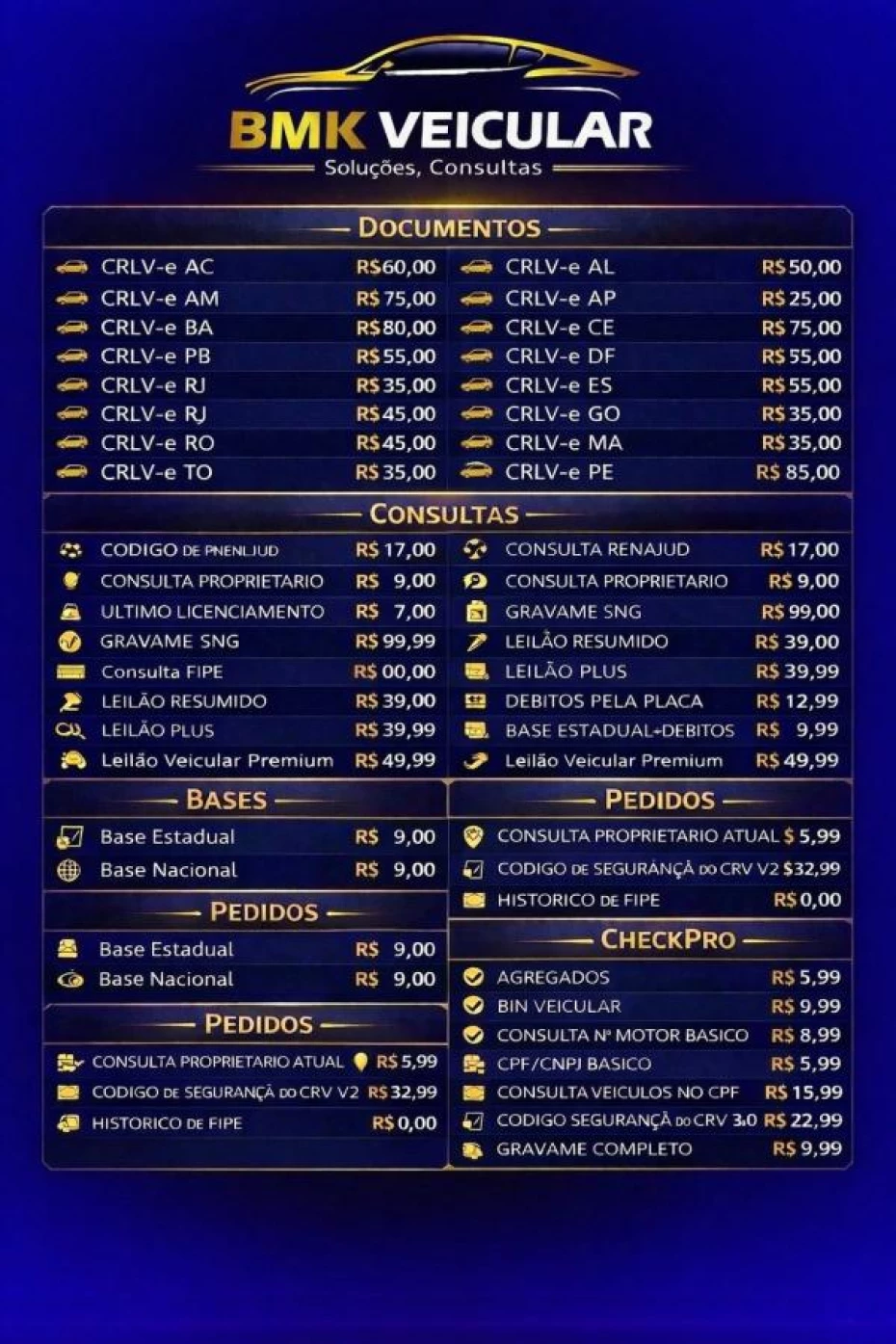 Enviar uma mensagem para o WhatsappSobre BMK Veicular Soluções, Consultas e Negativações