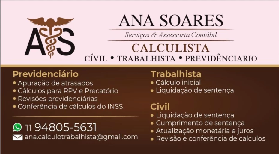 A.S Serviços e Assessoria em Cálculos Trabalhista e Previdenciário Em Ribeirão Pires / SP