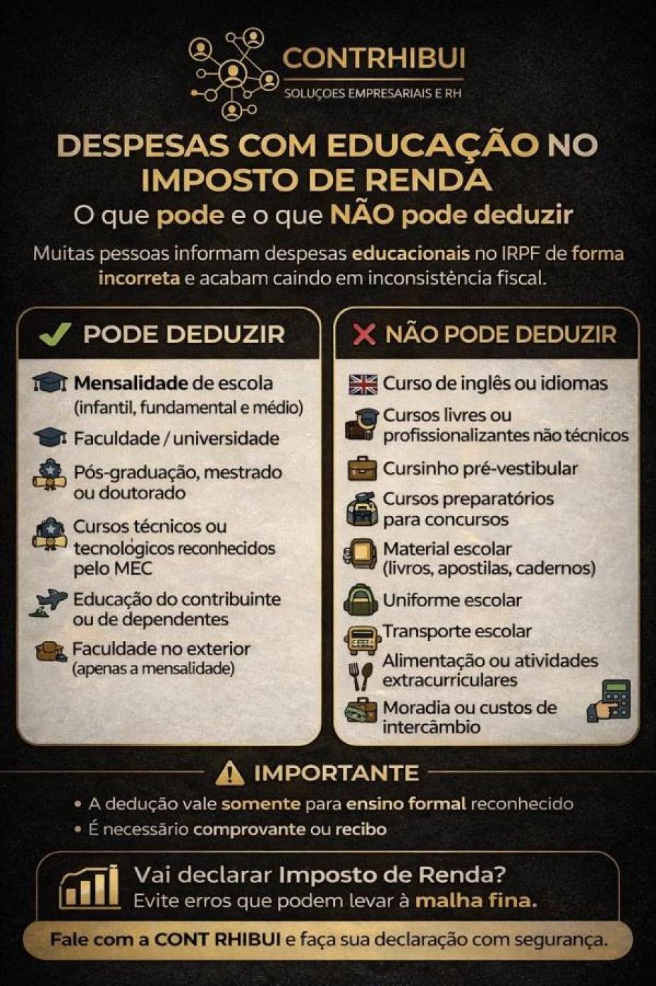 Além disso, oferecemos suporte em IRPF Carnê-Leão, auxiliando profissionais autônomos no correto registro e organização dos seus rendimentos para evitar problemas fiscais.