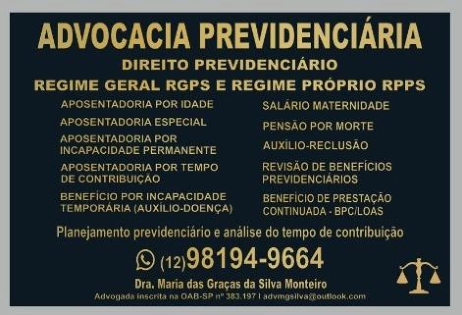 Se você está com dúvidas sobre aposentadoria, teve um benefício negado ou quer garantir o melhor resultado no seu processo, contar com uma advogada previdenciária em Taubaté faz toda a diferença. A Dra. Maria das Graças da Silva atua com foco exclusivo em Direito Previdenciário, oferecendo orientação clara, análise técnica e estratégias seguras para cada caso.
