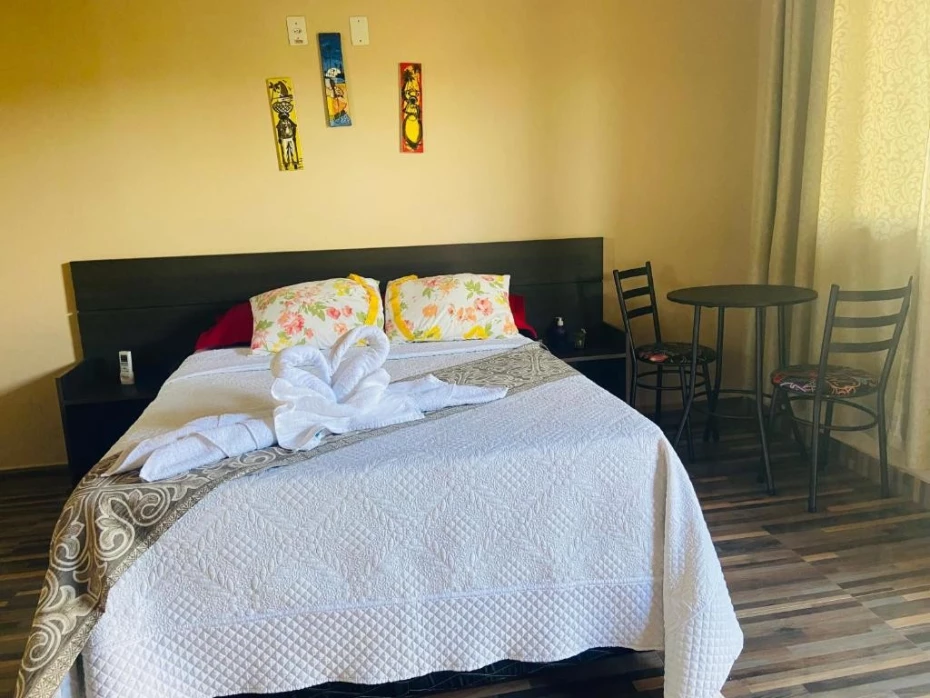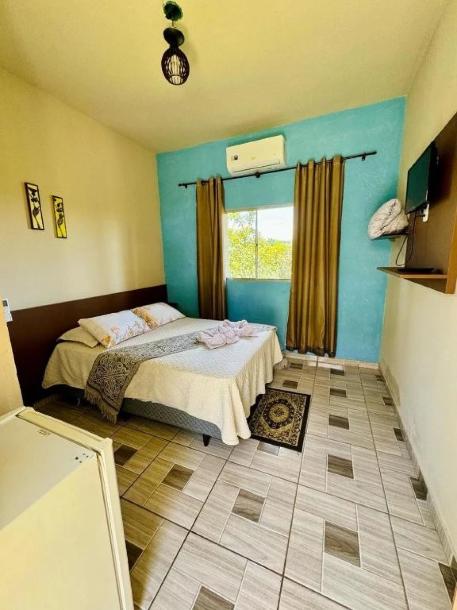 - Além de outas comodidades como Café da manhã incluso, Piscina Externa, Suíte com Hidromassagem, Quartos com Ar-condicionado, Parquinho Infantil e Bar.