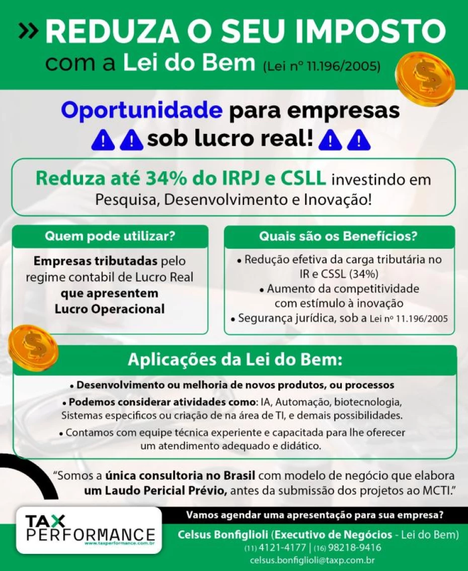 REDUZA O SEU IMPOSTO com a Lei do Bem (Lei nº 11.196/2005)