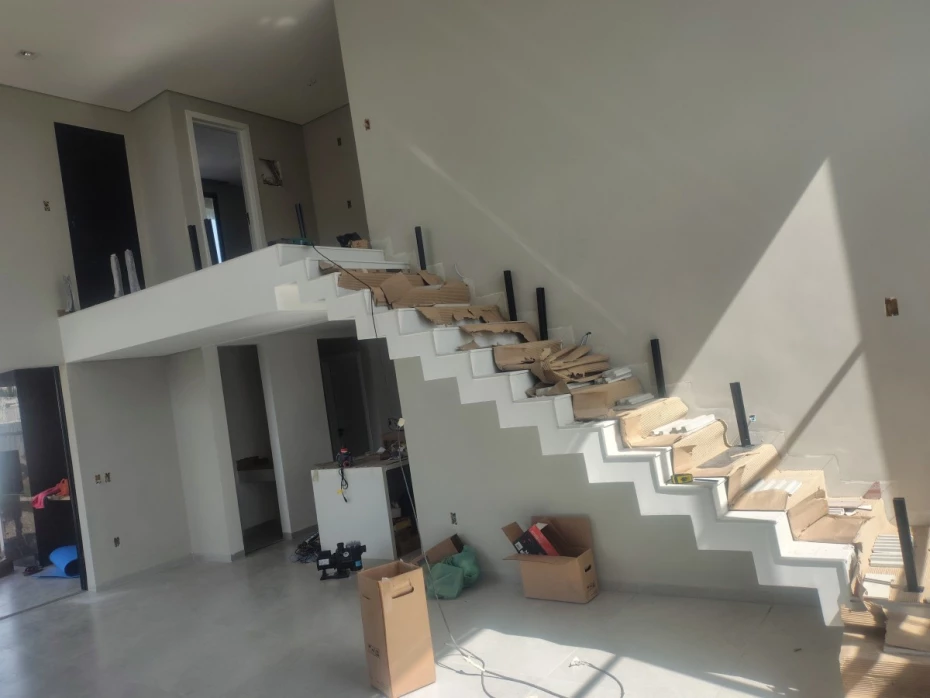 - Corrimão de alumínio e vidro para segurança e estética.