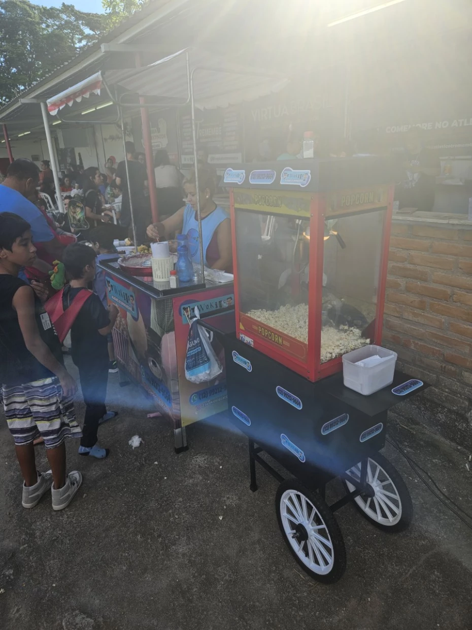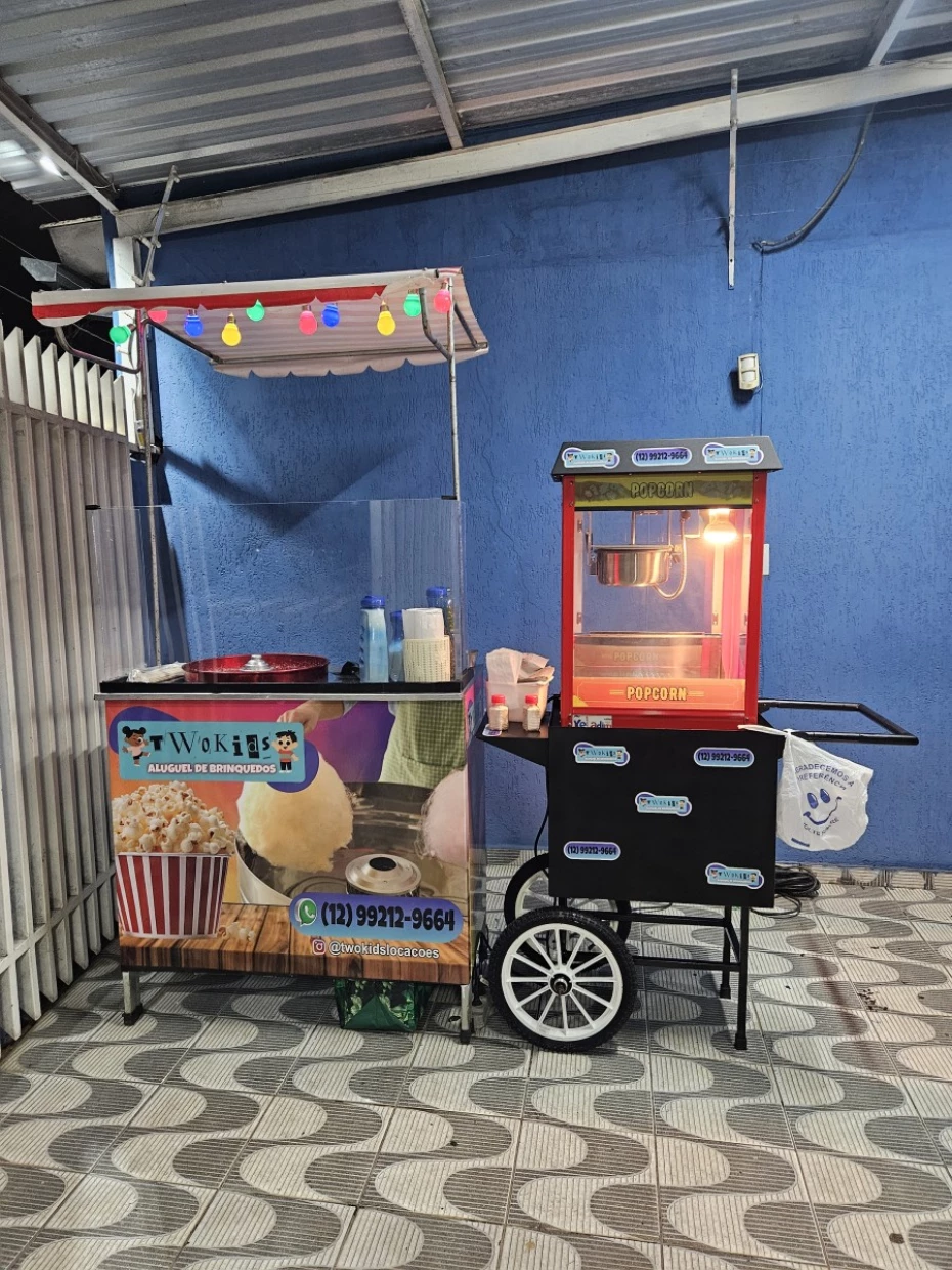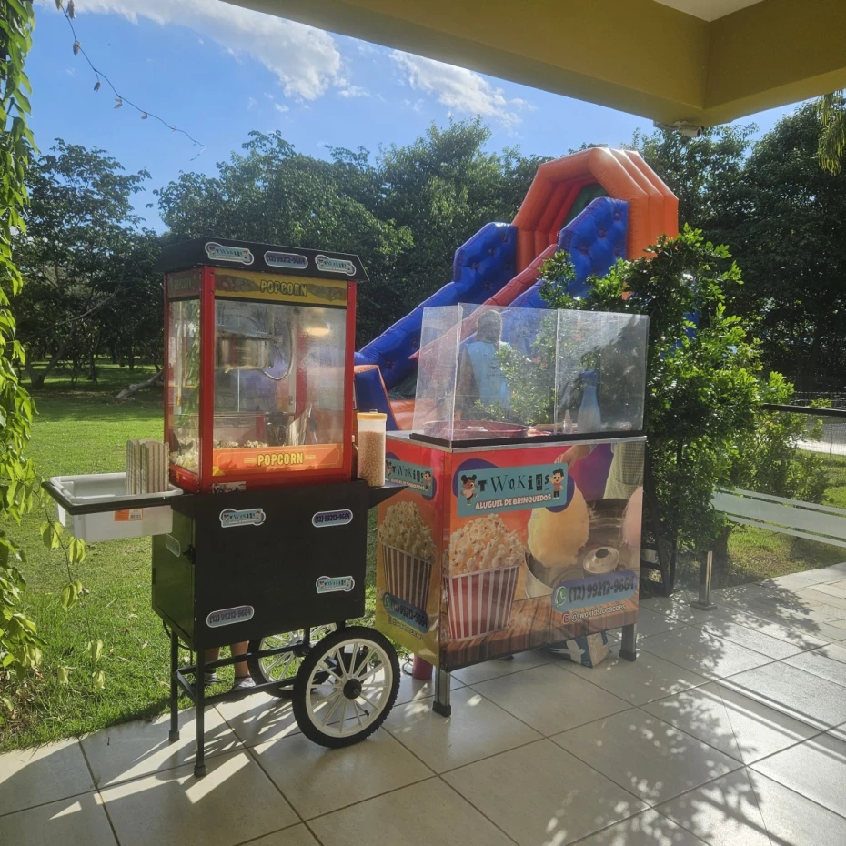 - Barracas: Pipoca com gostinho de manteiga e cheirinho de cinema, feita em pipoqueira profissional e Algodão-Doce macio e saboroso de qualidade.