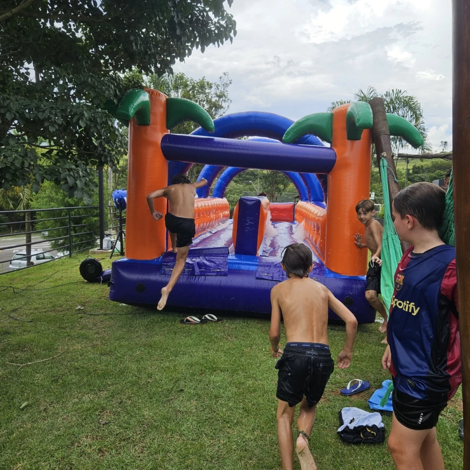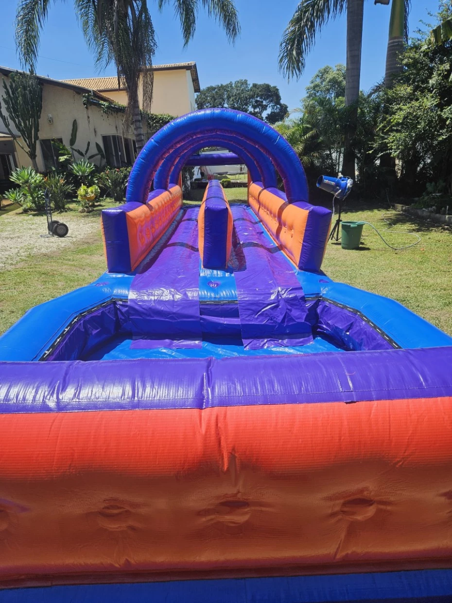 - Brinquedos Infláveis: Tobogã (escorregador), Tobogã para piscinas de alvenaria, Tobogã com piscina inflável, Futebol de sabão de tamanhos variados, Canhão de espuma, Corrida de Obstáculos, Kiddieplay quebra-cabeça AUTISMO, Guerra de Cotonetes, Radical Slide Duplo, Kiddieplay Super Mario, Castelinho-Piscina.