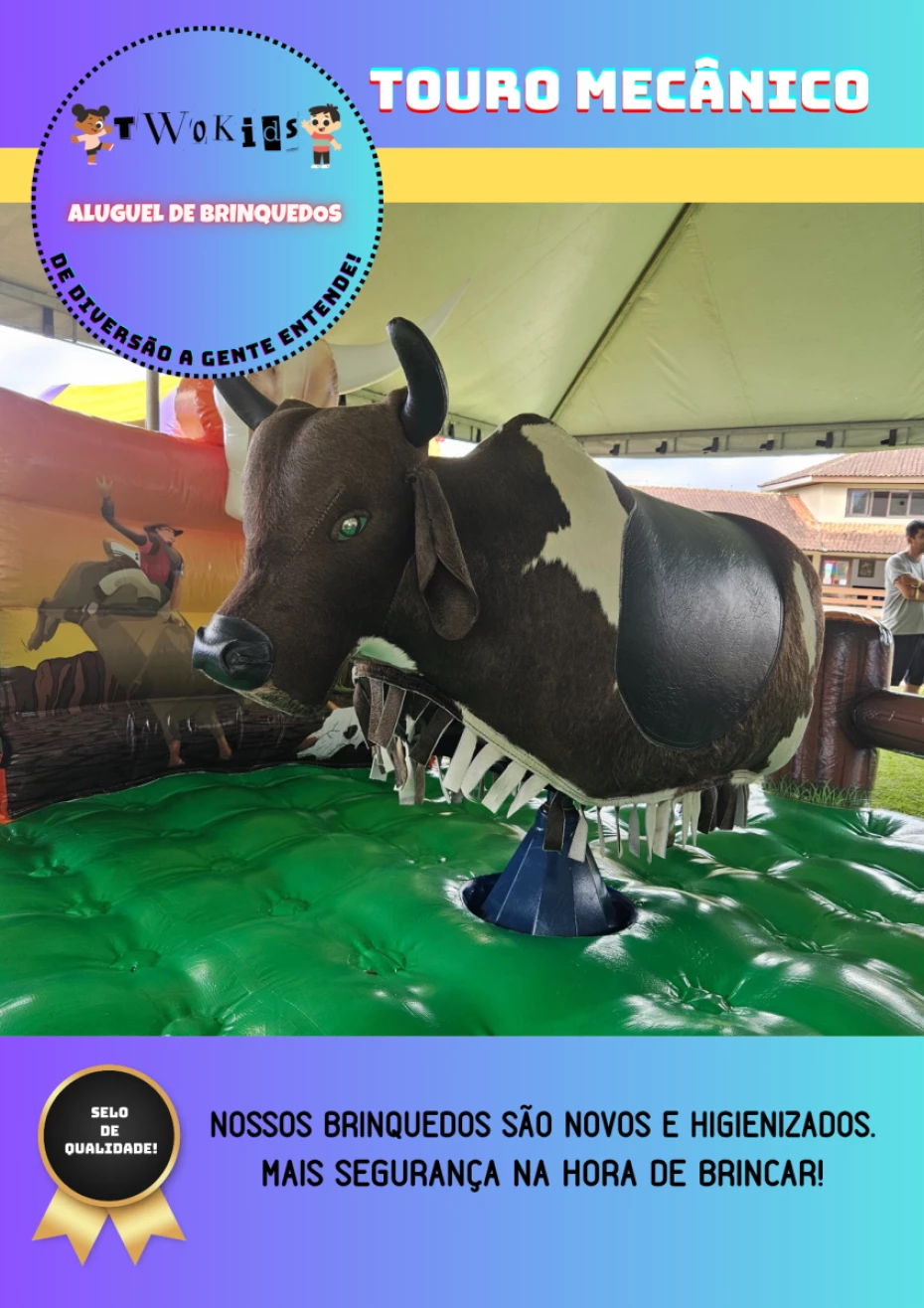 Na Two Kids, entendemos que a diversão é fundamental para eventos memoráveis. Por isso, oferecemos brinquedos infláveis, touro mecânico, cama elástica e muito mais! Nosso foco é criar experiências inesquecíveis para crianças e adultos, garantindo que cada festa seja repleta de alegria e sorrisos.