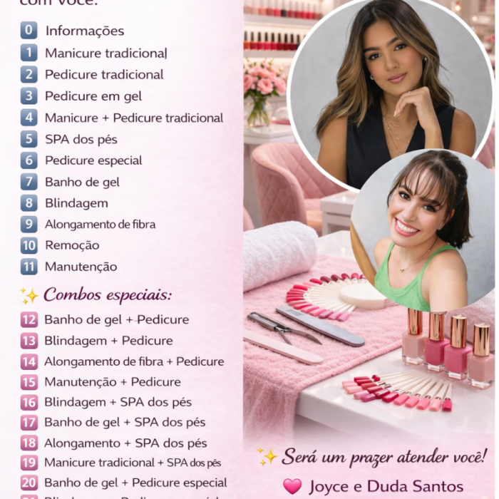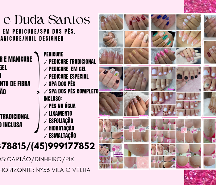 MANICURE E PEDICURE E NAIL DESIGNER E ESPECIALISTA EM SPA DOS PÉS. JOYCE E DUDA SANTOS .